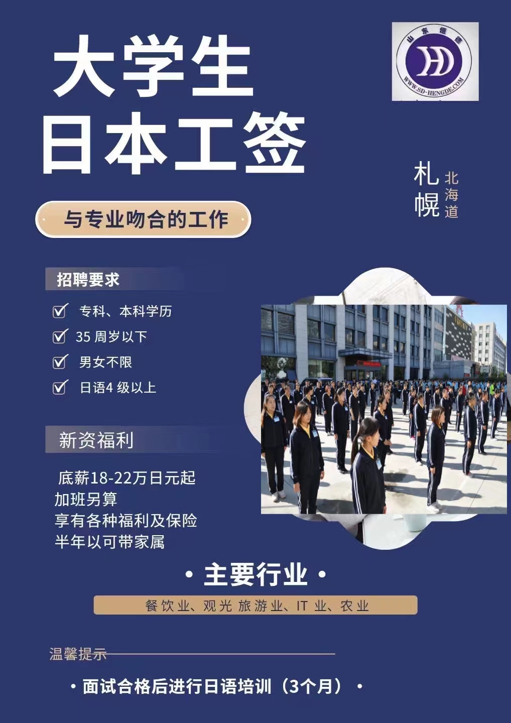 版權所有:山東恒德國際經濟技術合作有限公司 威海恒德職業培訓學校 地址:威海市高區火炬路153號-A 免費熱線:4006150009電話:(韓國部)+86-631-5672008(日本部)+86-631-5672006 (新加坡)+86-631-5672009 (留學部)+86-631-5672011 傳真:+86-631-5672028 郵 編:264209 郵箱:hengdeguoji@163.com51La| 策劃制作:威海雷迅網絡 魯ICP備19060589號 魯公網安備 37100302000191號