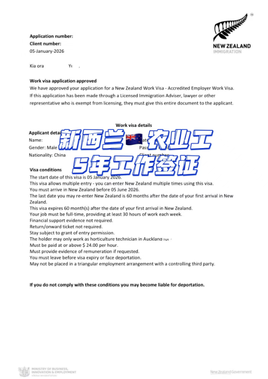 喜報!新西蘭農業工 5 年工作簽證獲批,正規外派通道開啟~